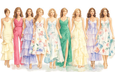…think romantic, whimsical, and garden-chic. Embrace soft pastel tones, delicate florals, and flowy fabrics that capture the magic of the season and the charm of an outdoor celebration. Please kindly refrain from wearing black or dark colours.
