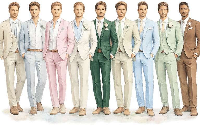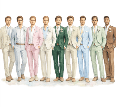 We suggest opting for earthy neutrals or soft pastels, such as stone, light grey, olive, or shades of soft pink and purple. Please note: no black or dark colours to be worn. We kindly ask that you stick to white or coloured shirts and full-length trousers. Shorts are not permitted. Short-sleeve shirts are perfectly fine, and while a tie is optional, it is not mandatory.